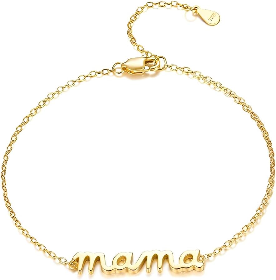 Mom Gifts, Personalized Mama Bracelet, Birthday Gifts for Women, Adjustable Hypoallergenic Mom Bracelet for Wife Grandma (Mama Gold)