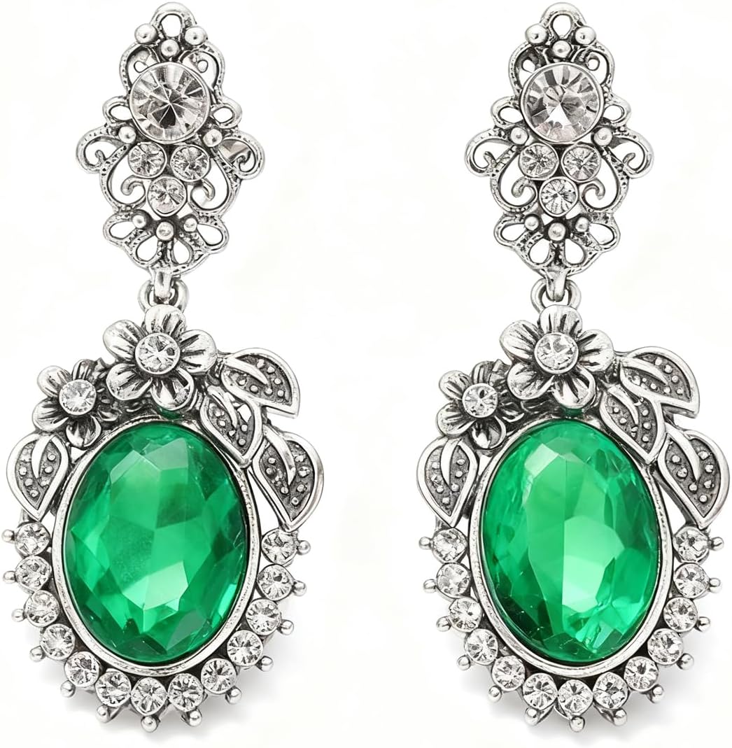 RITIM Emerald Vintage Drop Earrings for Women, Elegant Crystal Dangle Earrings, Victorian Estate Jewelry for Wedding, Party, for Her
