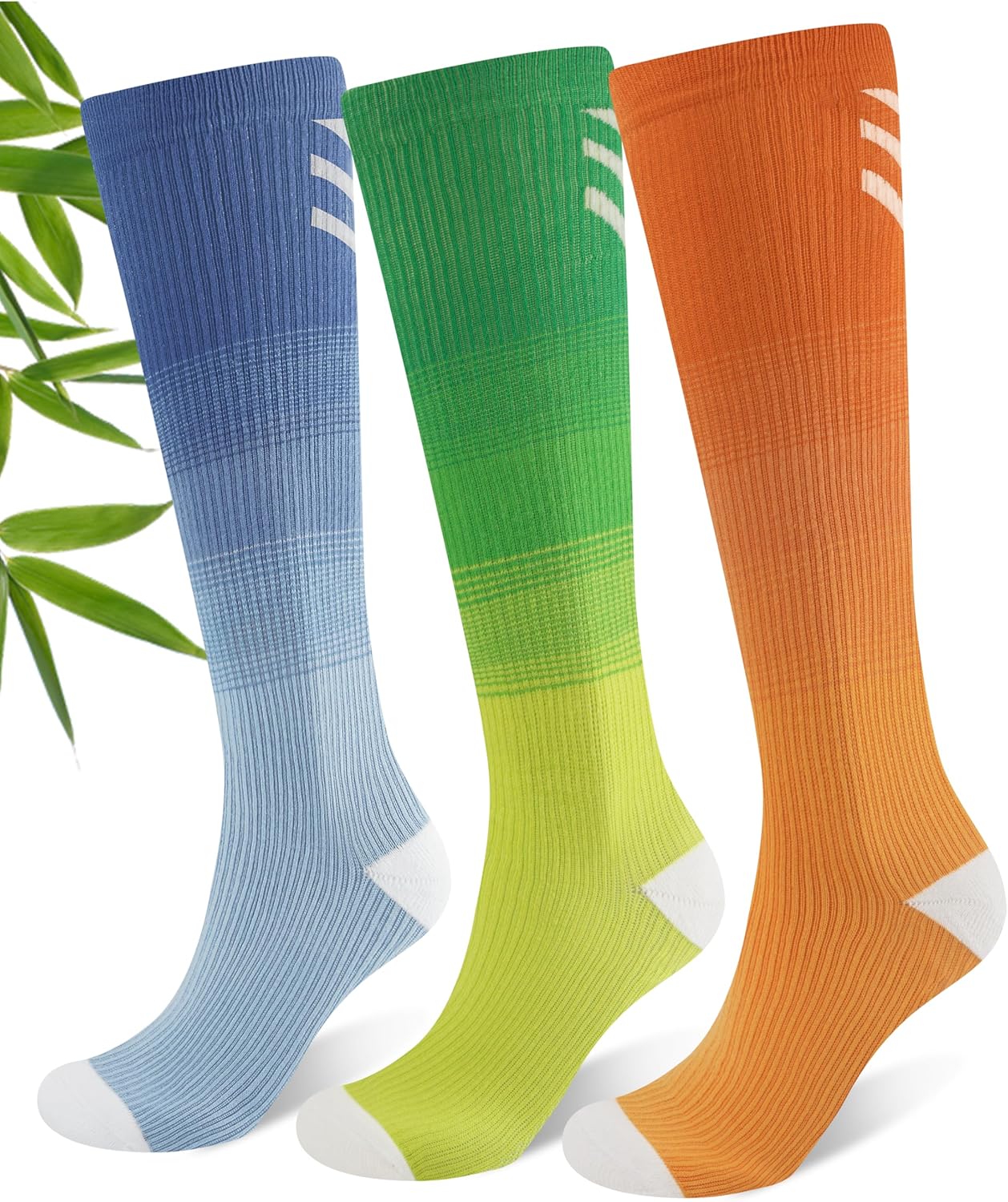 JODUCE 3 Pairs Compression Socks for Women, Bamboo Viscose 15-25 mmHg Knee High Support Socks for Pregnant Nurses Travel