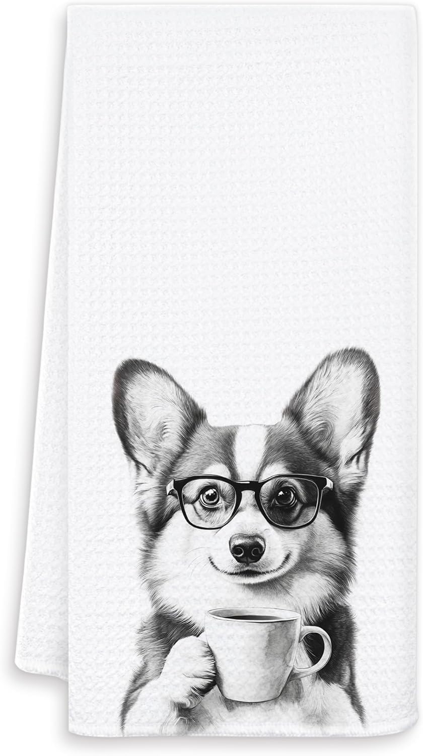 Funny Corgi Kitchen Towels, Gifts for Corgi Lovers Dish Tea Towels, Black and White Dog Lovers Owner Gifts Hand Towel for Kitchen, Coffee Bar Station Decor, 16x24 Inch