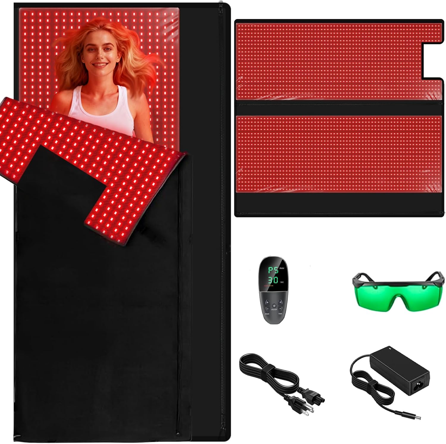 - Red Light Therapy Pad: With a 71"×31" design and detachable dual-mat structure, it can lie flat or snap into a cocoon-style red light therapy sleep bag. Made for home use, it delivers targeted care from face to feet, fully covering the back, joints, and legs