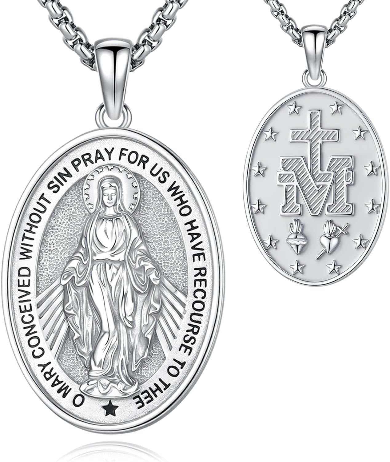 Saint Necklace 925 Sterling Silver Saint Michael/Christopher/Virgin Mary/Raphael/Anthony/Joseph/Benedict/Francis/Jude/Patrick/Peregrine Necklace Religious Amulet Medal Patron Saint Jewelry for Men with Gift Box