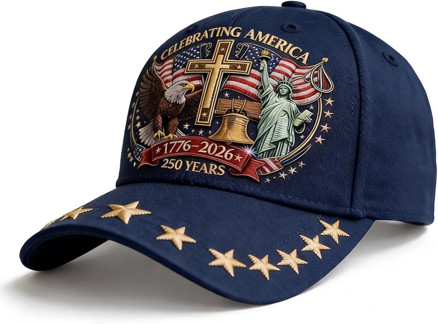 Eagle & Liberty & Cross,US 250th Anniversary Celebration Casual Hat,United States 250th Anniversary Hat