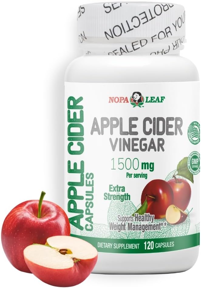 NOPA Leaf Apple Cider Vinegar Capsules – 1500 mg per Serving – 120 Capsules – Dietary Supplement, Non-GMO