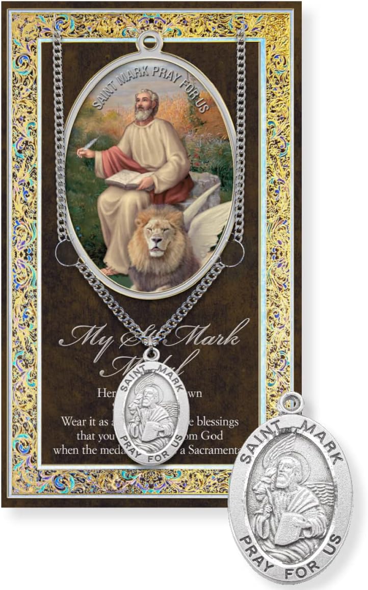 Hirten St. Mark Pewter Medal Pendant with Chain, Made in USA