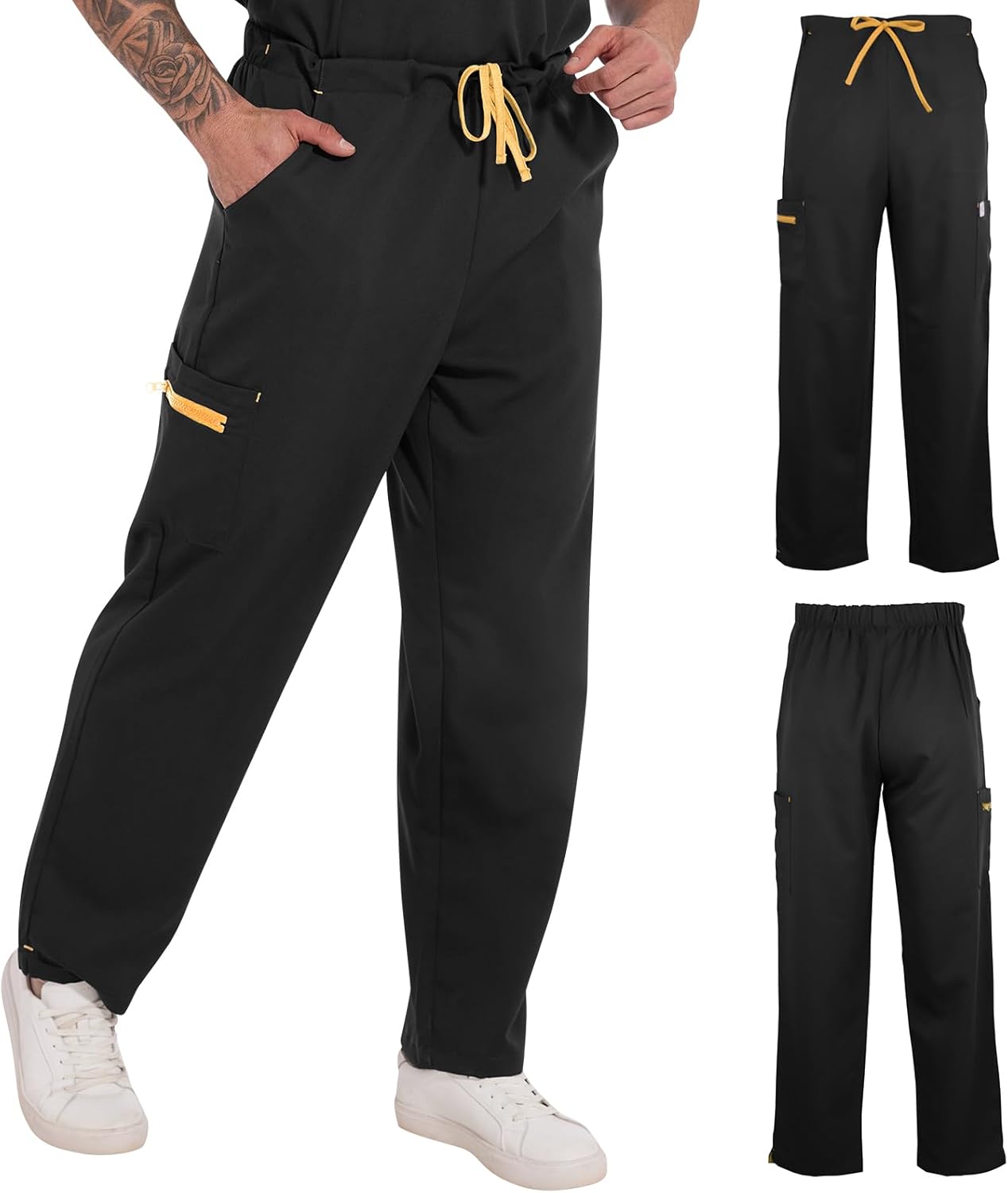 - 5 Bottom Pockets Surgical Scrub Pants: 2 slanted pockets; 2 cargo pockets on legs - 1 pocket with zipper keep small items secure, making it convenient for you to store small items while working. No more fumbling for the phone or pen!