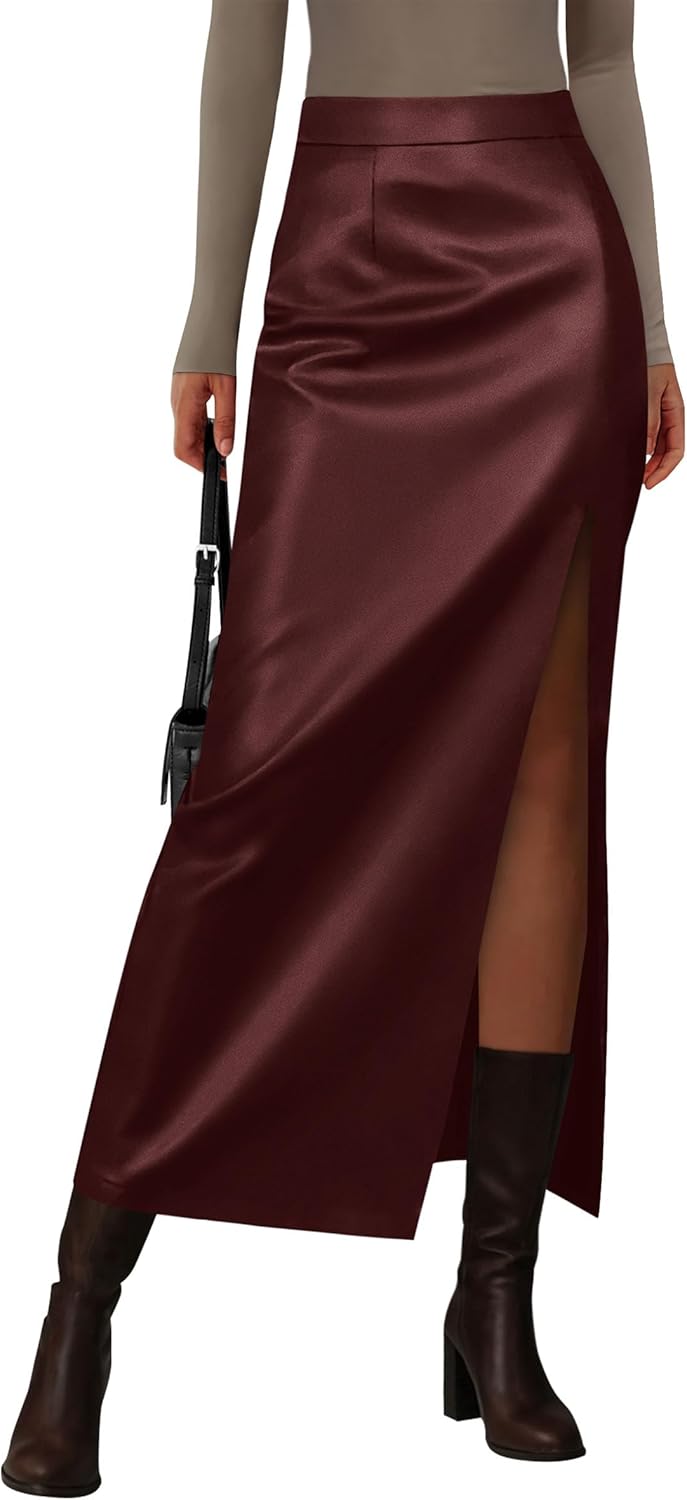 PRETTYGARDEN Womens Faux Leather Skirts 2026 Fall Fashion Bodycon High Waisted Slit Work Office Winter Maxi Long Pencil Skirt