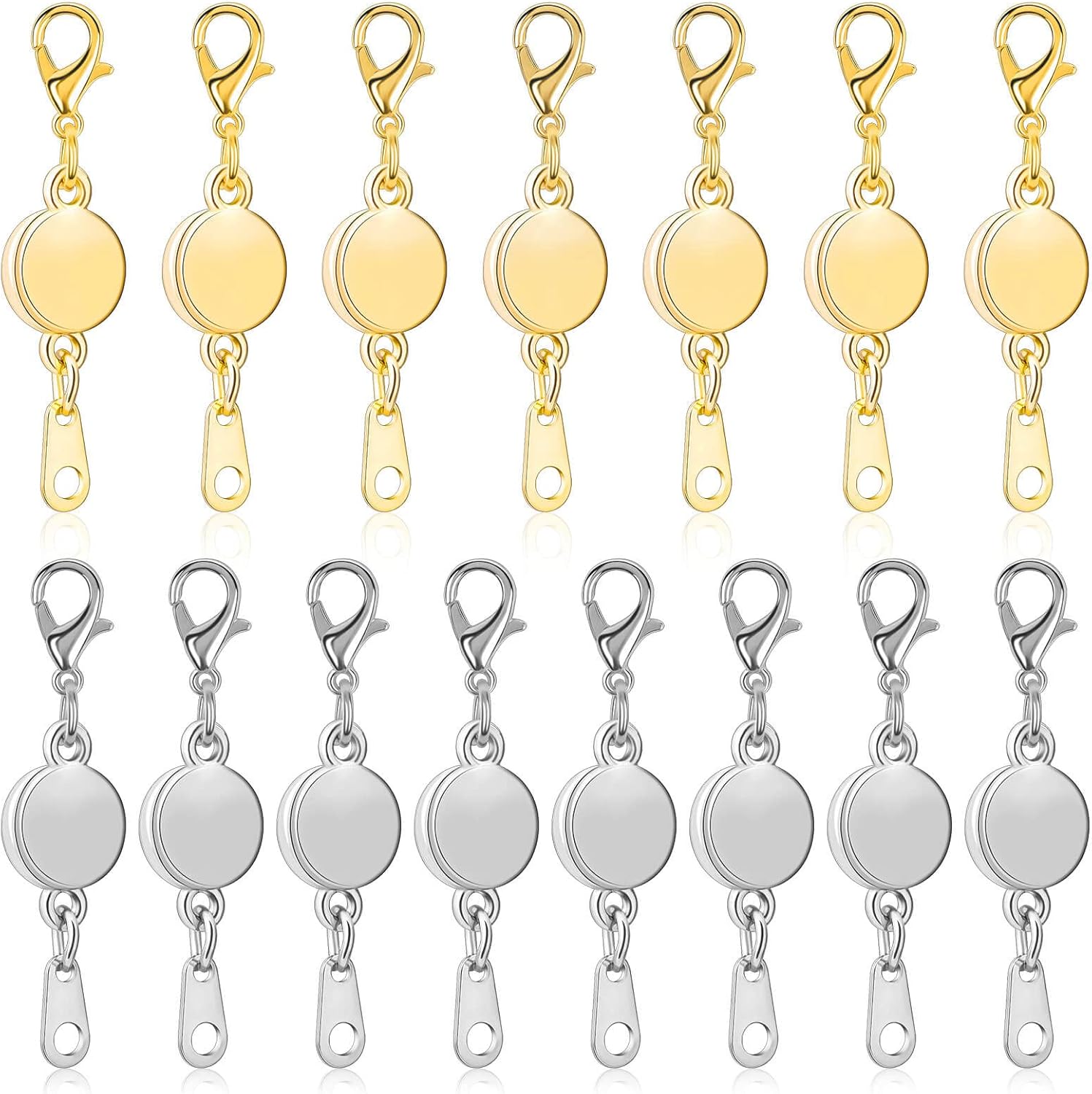 - MAGNETIC JEWELRY CLASPS: Package comes with totally 15 sets of magnetic necklace clasps and closures in silver and gold color. These magnetic necklace clasps help putting on necklaces and bracelets so much easier and quicker
