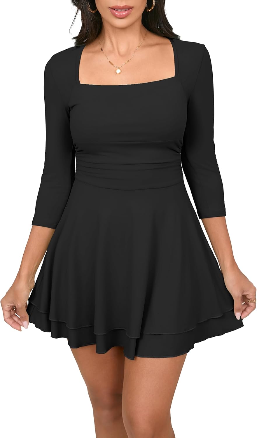 INR Women's High Elasticity Mini Dress Square Sexy Dresses Corset Waist with Ruffle Hem Skirts