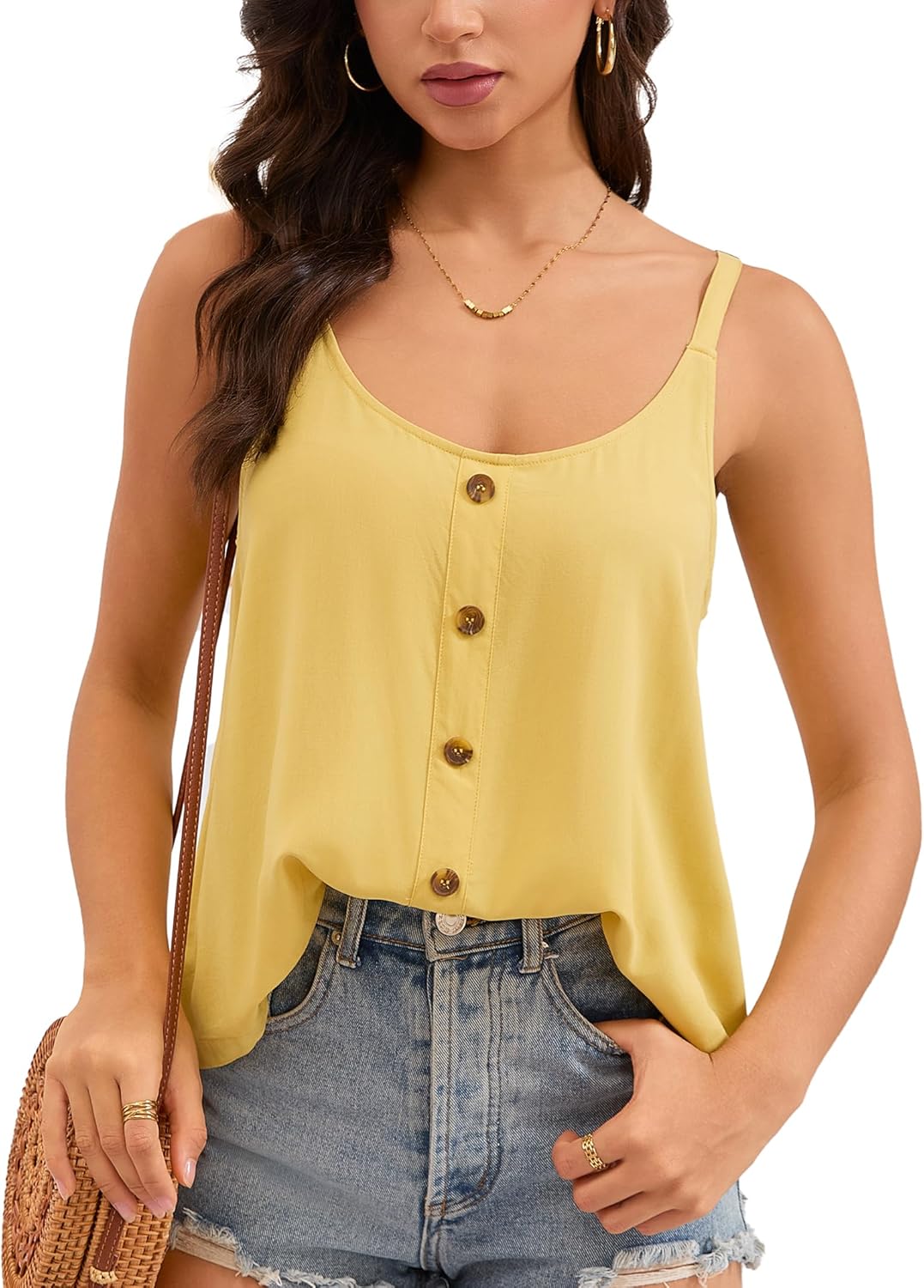 Women's Loose Flowy Camisole Top Summer Spaghetti Strap Tank Shirt Blouse for Casual Vacation Outdoor XS - XXL