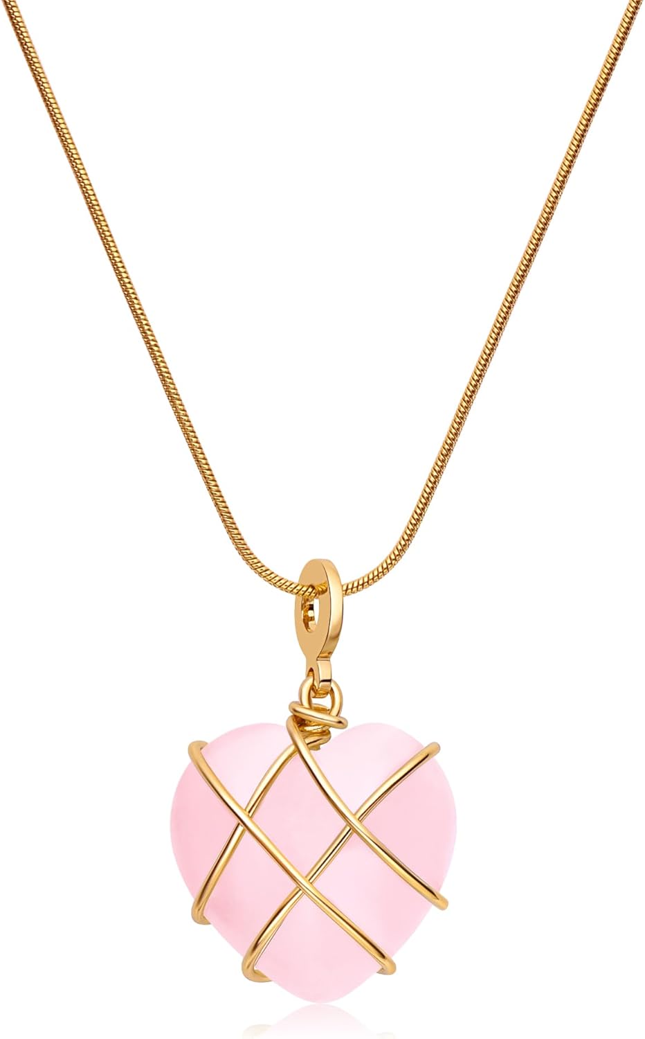 Rose Quartz Heart Opal Pendant For Women Girls Stainless Steel Friendship Necklaces