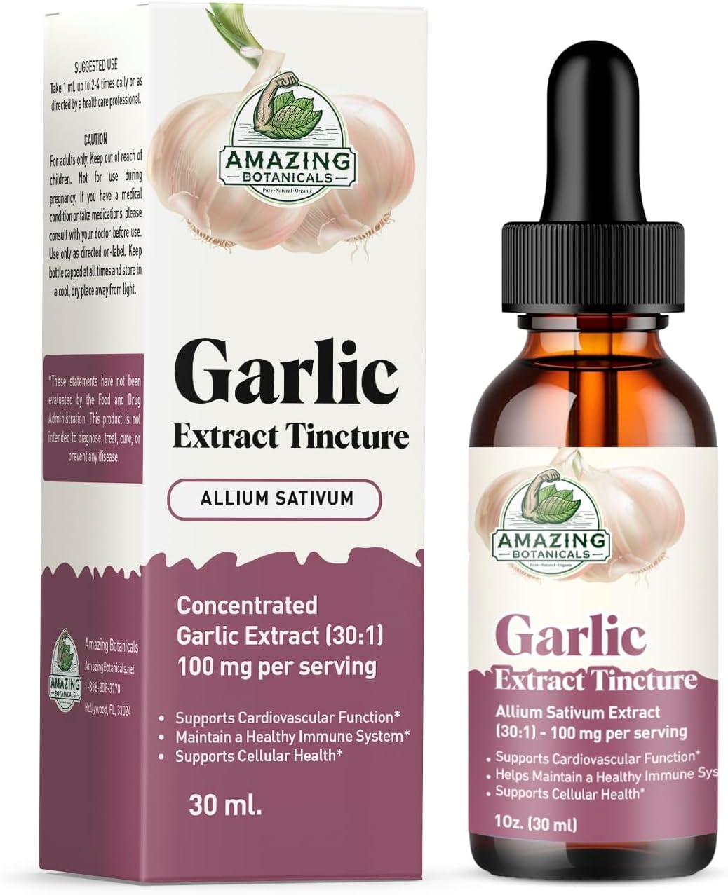 Amazing Botanicals Garlic Tincture – Allium Sativum Herbal Extract – High Potency Liquid Supplement – (1oz)