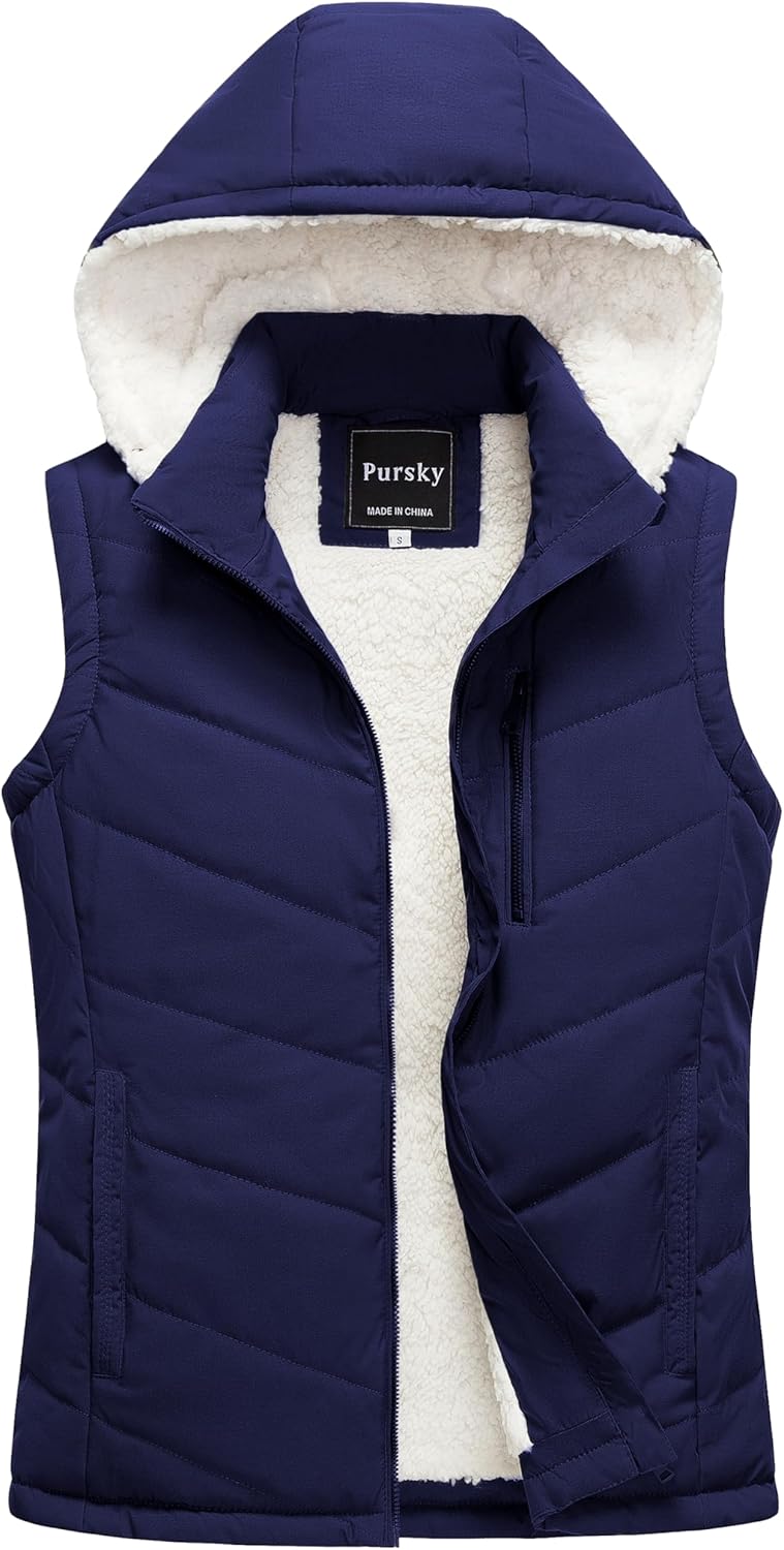 Pursky Women's Winter Vest Sherpa Fleece Lined Puffer Vest Warm Lightweight Sleeveless Jackets With Removable Hood