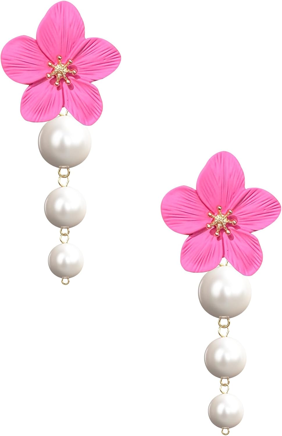 Floral Pearl Statement Earrings For Women Flower Large Stud Dangle Drop Earrings Boho