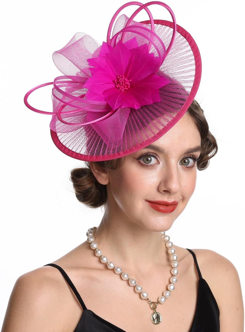 SAFERIN Elegant Women's Fascinator Hat with Veil and Feather Hair Clip Headpiece for Weddings Tea Party