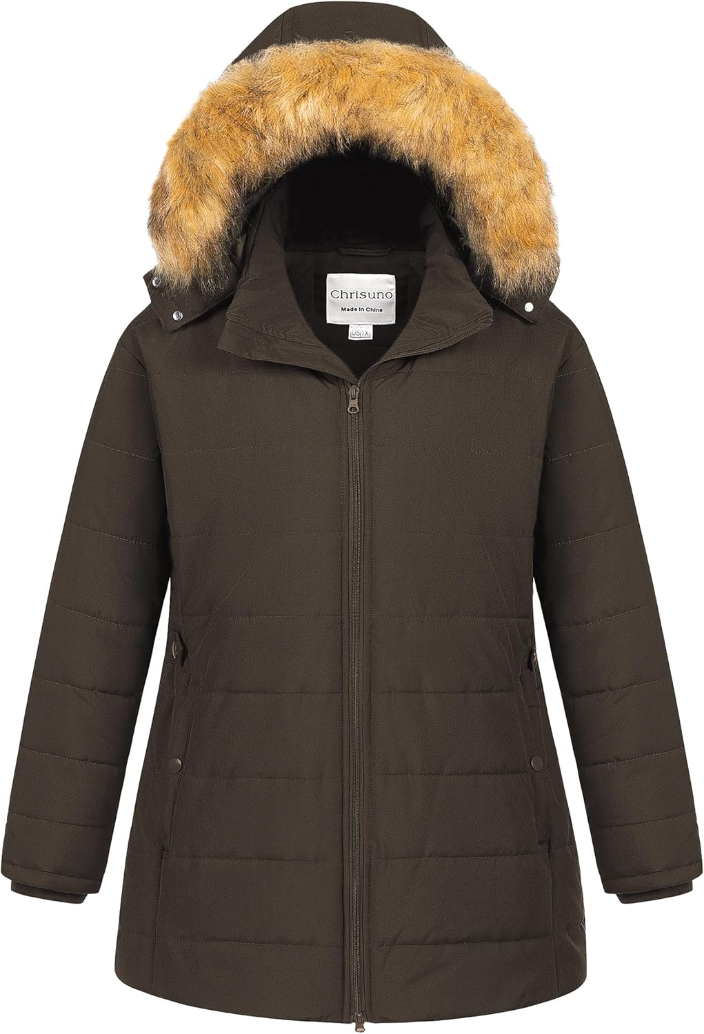 Chrisuno Women's Plus Size Winter Puffer Jacket Warm Long Winter Coats Quilted Waterproof Fleece Lined Detachable Fur Hood