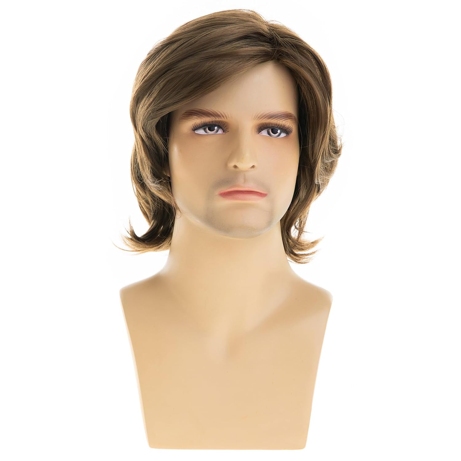 Mens Short Brown Wig Natural Layered Synthetic Halloween Cosplay Party Full Wigs for Male Guys