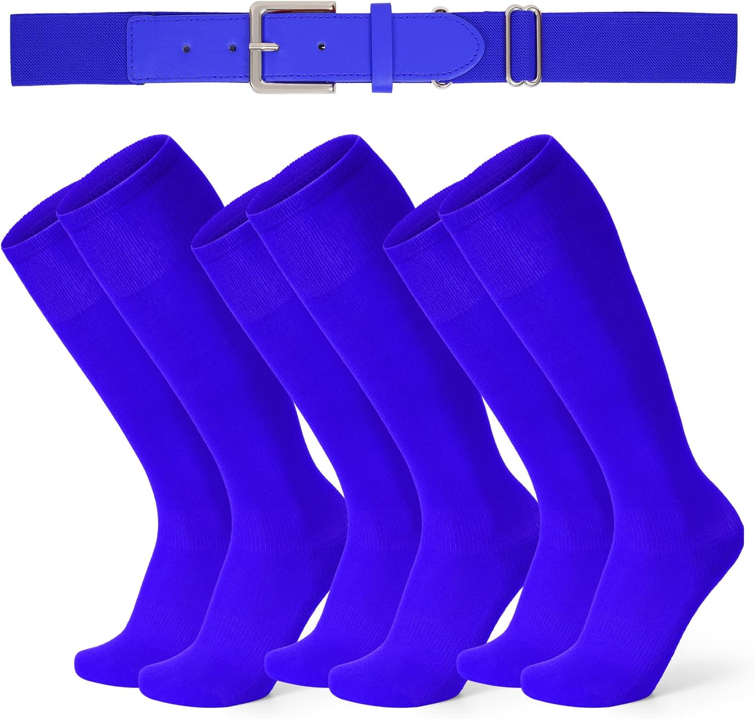 XZQTIVE 3 Pairs of Baseball Softball Socks and 1 Baseball Softball Belt Combo Set Knee-High Soccer Socks for Kids Youth Adult