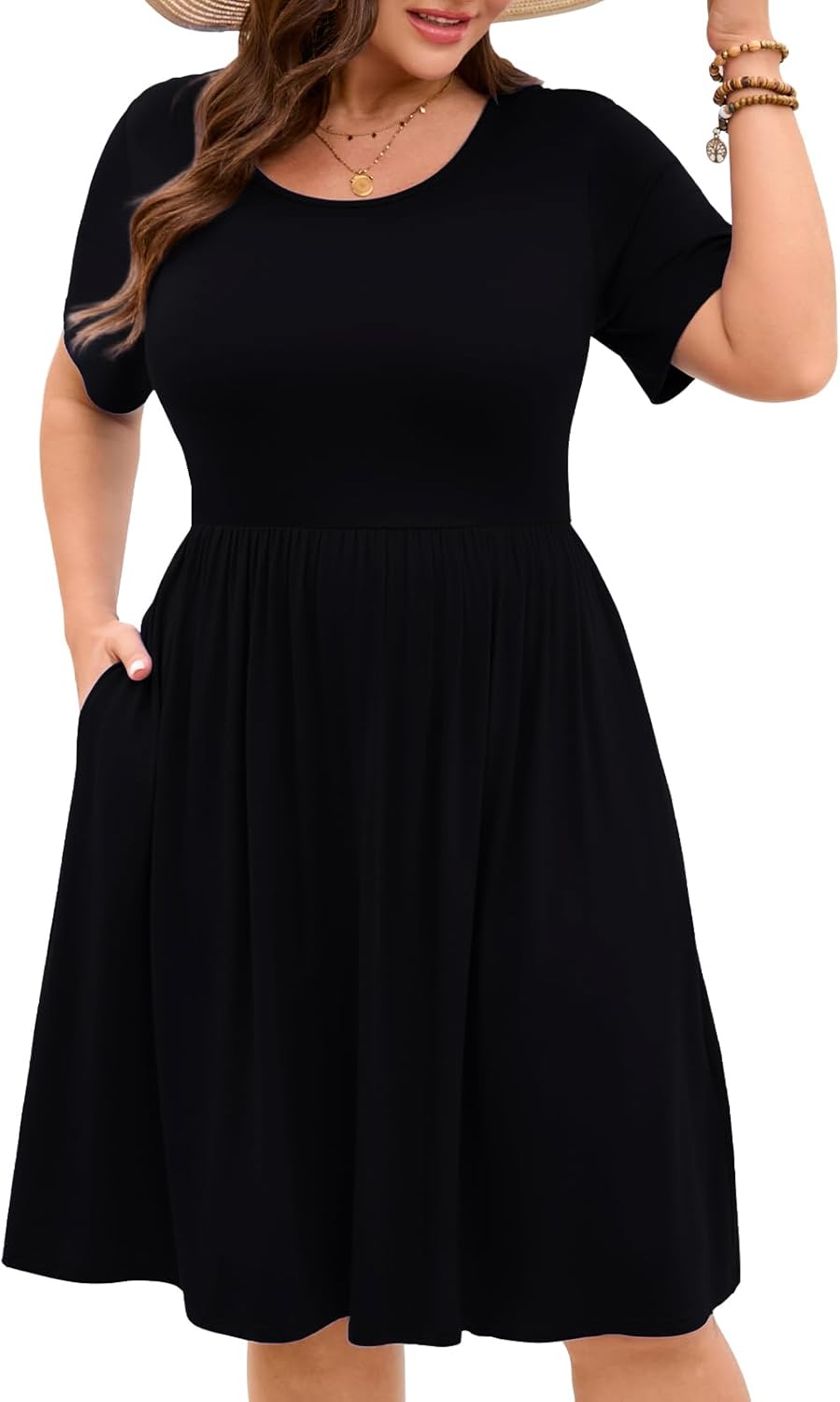 JollieLovin Women Plus Size Summer Dress T Shirt Short Sleeve Casual Empire Waist Dresses with Pockets(L-5X)