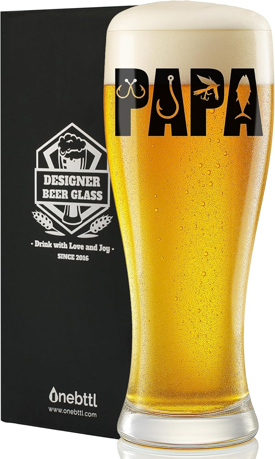 Onebttl Fishing Gifts for Papa Grandpa, Fishing Gifts for Men, 15oz Beer Glass, Papa Gift for Christmas, Father's Day, Birthday