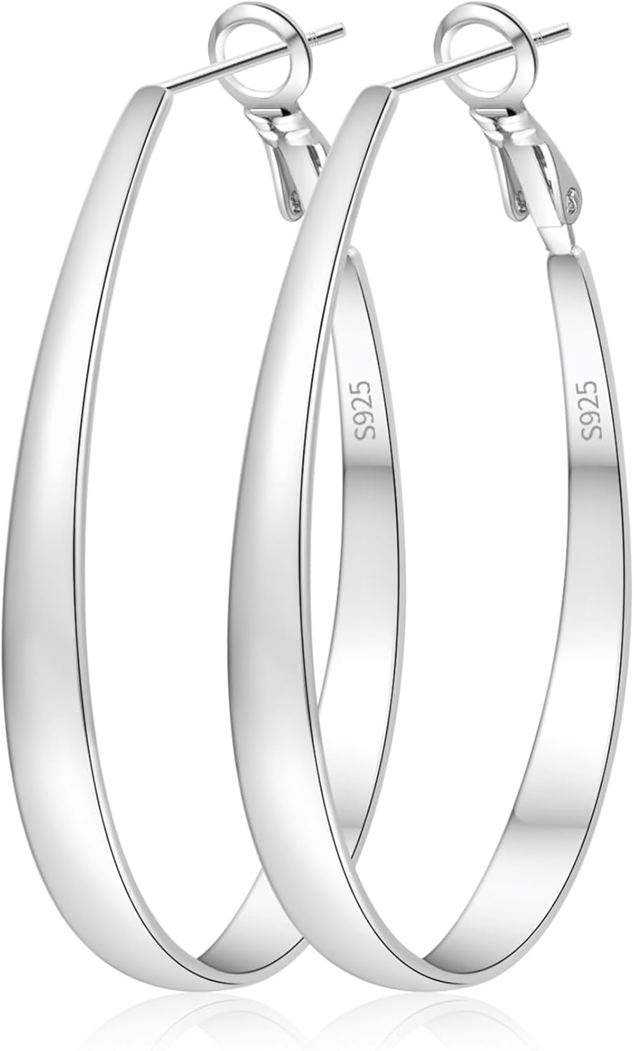 KUMIKUMI Silver Hoop Earrings for Women,Oval Hypoallergenic Sterling Silver Hoop Earrings Lightwieght Large Hoops Earring for Women Gifts
