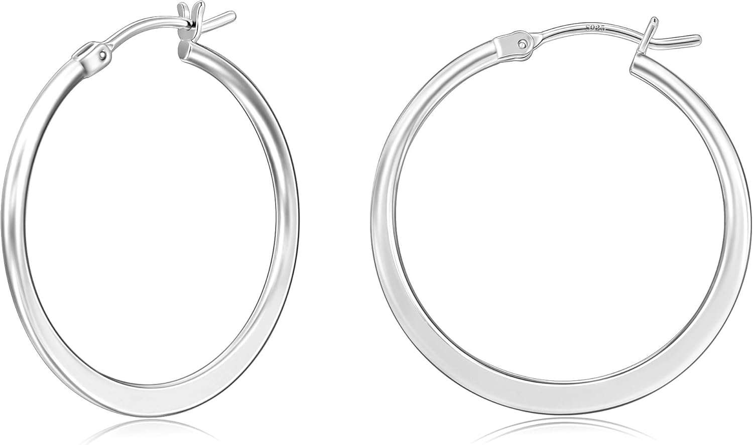 Gacimy Flattened 14K Gold Plated Hoop Earrings for Women, 14K Real Gold Plated Hoops with 925 Sterling Silver Post,Hypoallergenic Lightweight Earring
