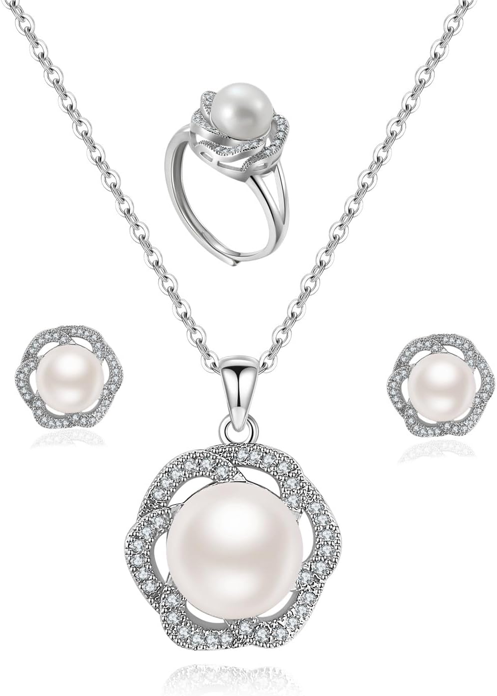 la luen Freshwater Single Pearl Necklace Set,Dainty Necklace Earring with 18 Inch Silver Chai Wedding Jewelry for Brides Mom Mother's Day Birthday Gifts