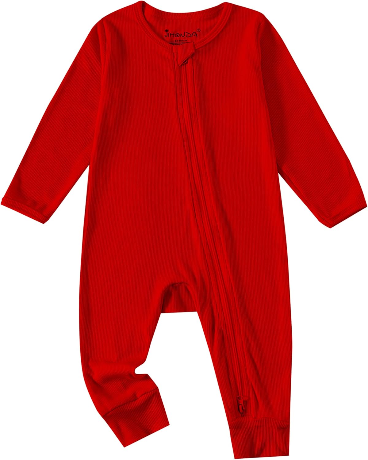 Jimonda Baby Jumpsuit,Ribbed Long Sleeve Romper,Girls Boys Footless Pajamas,Gender Neutral Clothes,2-Way Zip Sleepers Red