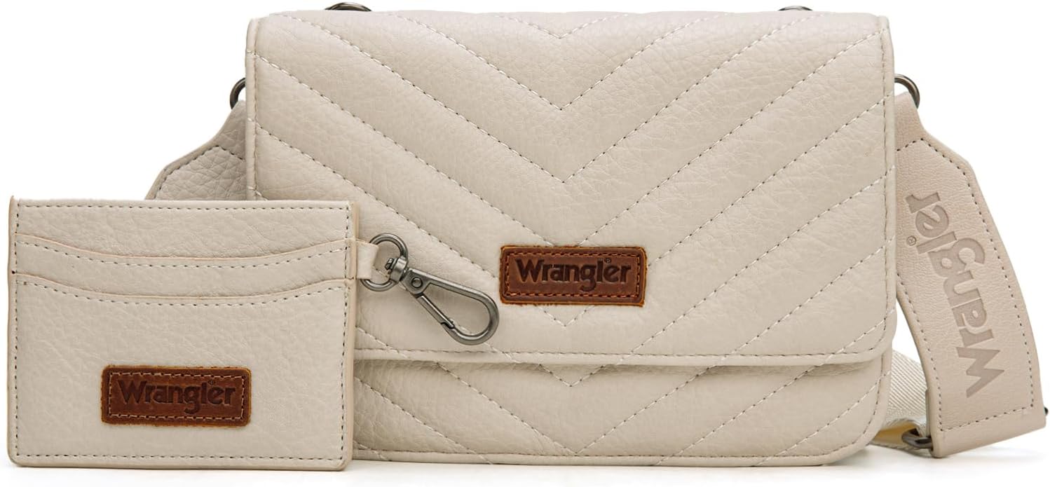 Wrangler 2 Pcs Flap Crossbody Bags for Women Detachable Dual-compaument Wallet Set