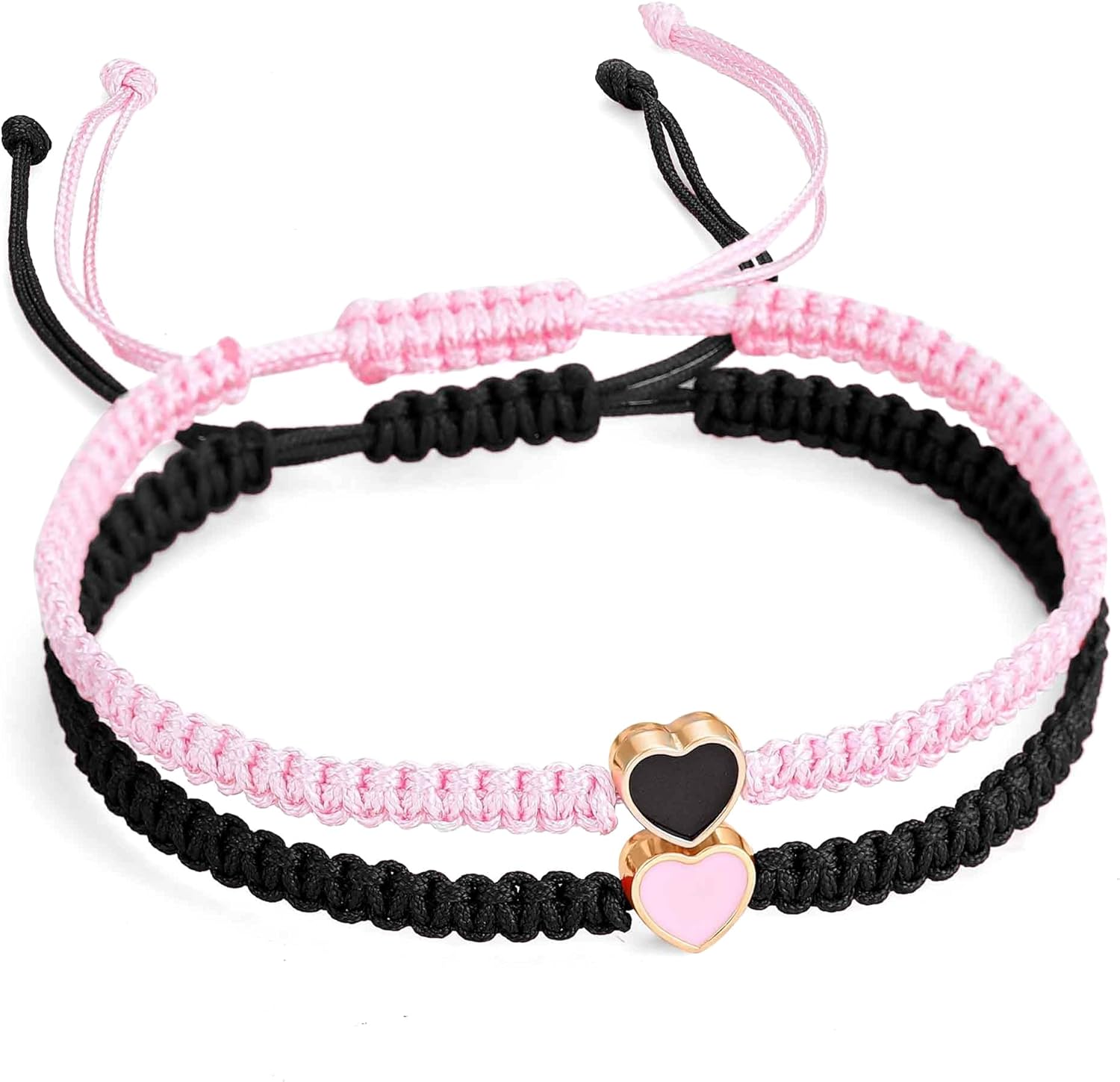 MJartoria BFF Bracelets for 2-Heart Matching Bracelets Adjustable Strand Bracelet Friendship Bracelets Jewelry Gifts for Teen Women Couples