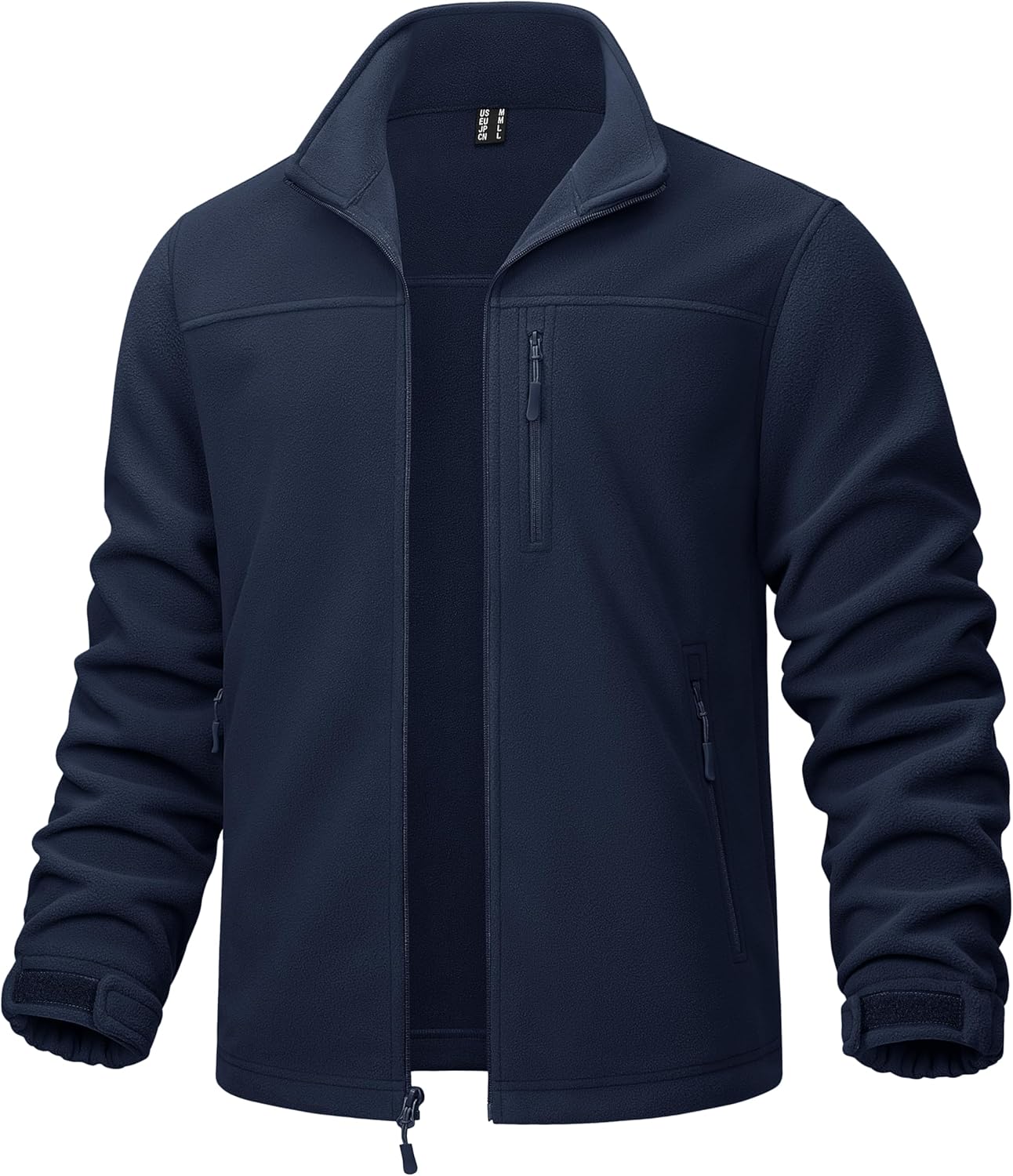 TACVASEN Men's Polar Fleece Jacket Full Zip Lightweight Tactical Jacket with Pockets Winter Coats Warm Casual Hiking Outdoor