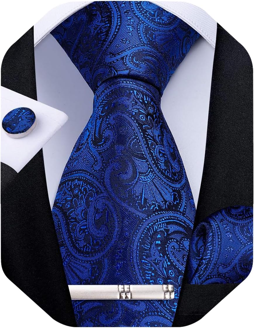 DiBanGu Paisley Ties for Men Silk Necktie and Pocket Square Cufflinks Tie Clip Set Woven Classic Mens Tie for Wedding Party