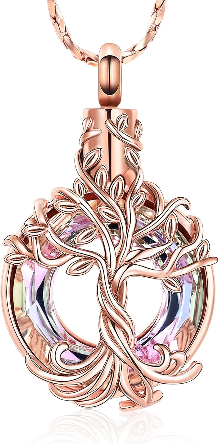 Imrsanl Tree of Life Urn Necklace for Men Women Cremation Jewelry with Circle Crystal Memorial Keepsake Jewelry Gifts for Human Adult Ashes