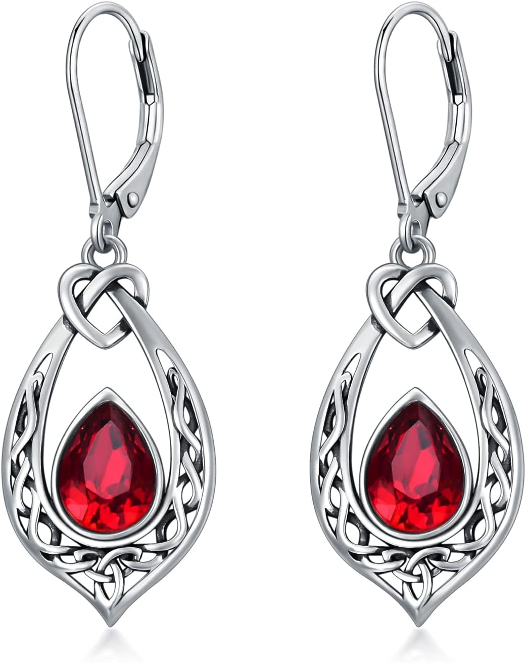 Celtic Knot Dangle Earrings 925 Sterling Silver Oxidized Vintage Drop Leverback Earrings with 8 * 6mm Simulated Birthstone Crystal Christmas Jewelry Gifts for Women (Gift Box)