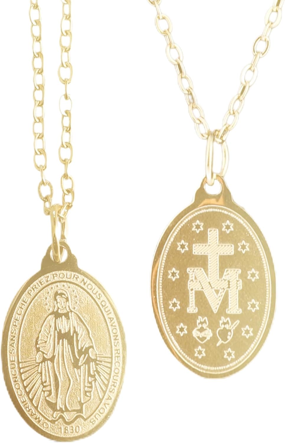 Miraculous Medal - Virgin Mary Necklace - Catholic Family Owned Brand - Made in USA - 16 Inch Stainless Steel Chain - Tarnish Free Gold Jewelry - Necklaces for Women