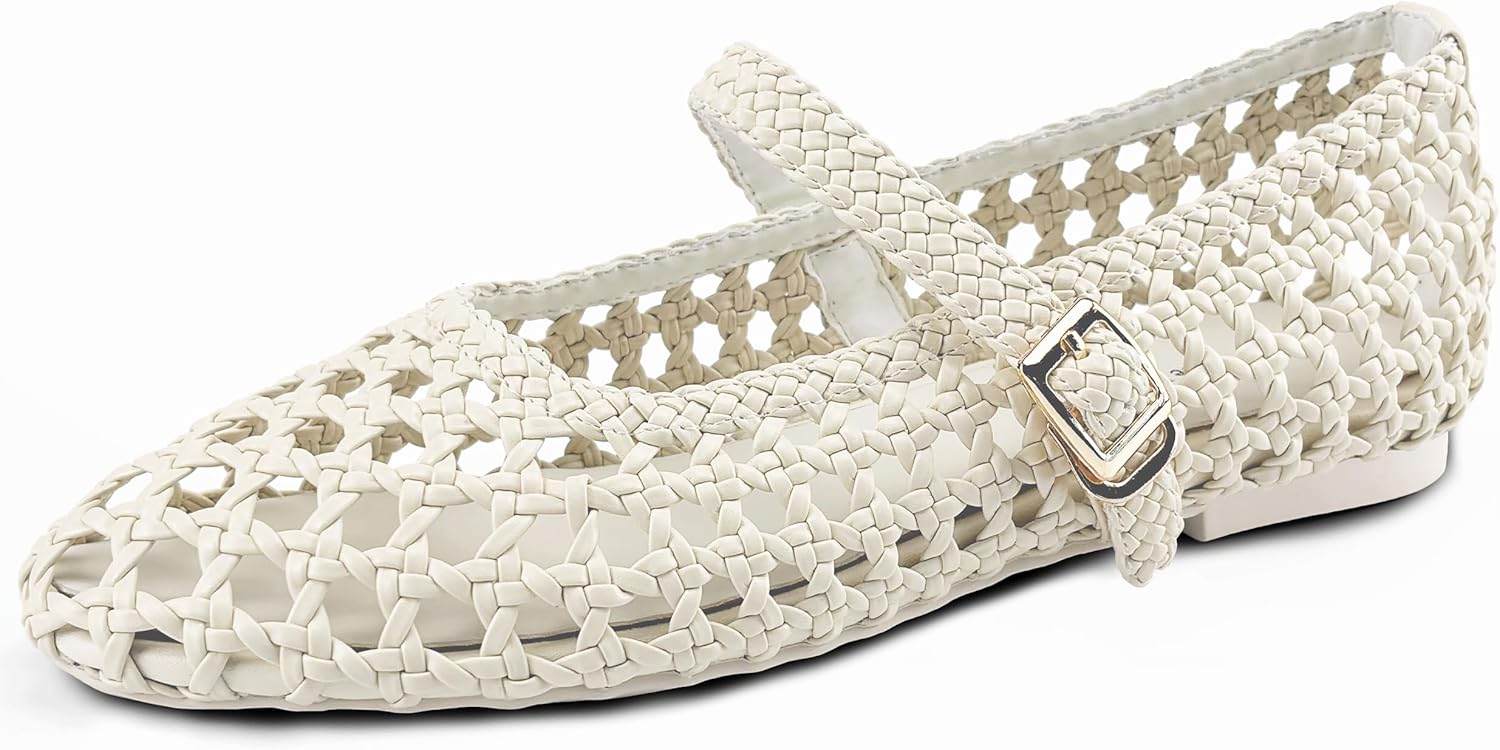 Woven Flats for Women Mary Jane Ballet Flats Shoes with Adjustable Buckle Strap, Hidden 0.6 Inch Heel,Memory Foam, Faux Leather, Soft Comfy Dressy Shoes