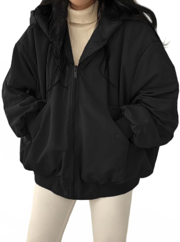 EMMIOL Womens Winter Coats Hooded Fleece Puffer Reversible Long Sleeve Oversized Full Zipper Warm Jackets