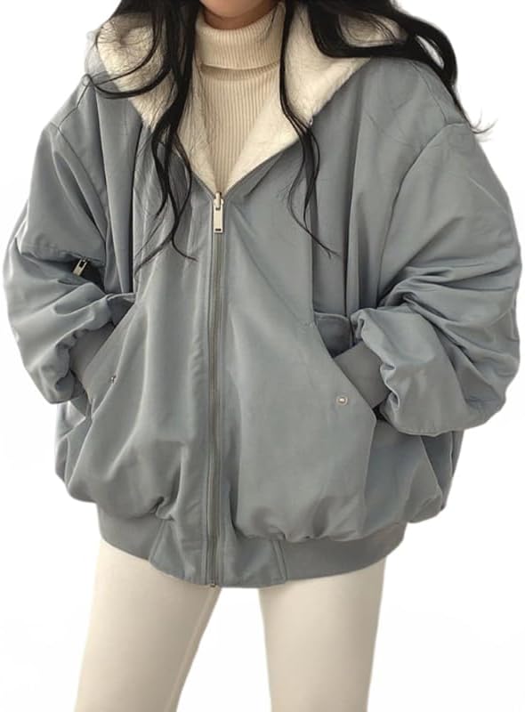 EMMIOL Womens Winter Coats Hooded Fleece Puffer Reversible Long Sleeve Oversized Full Zipper Warm Jackets