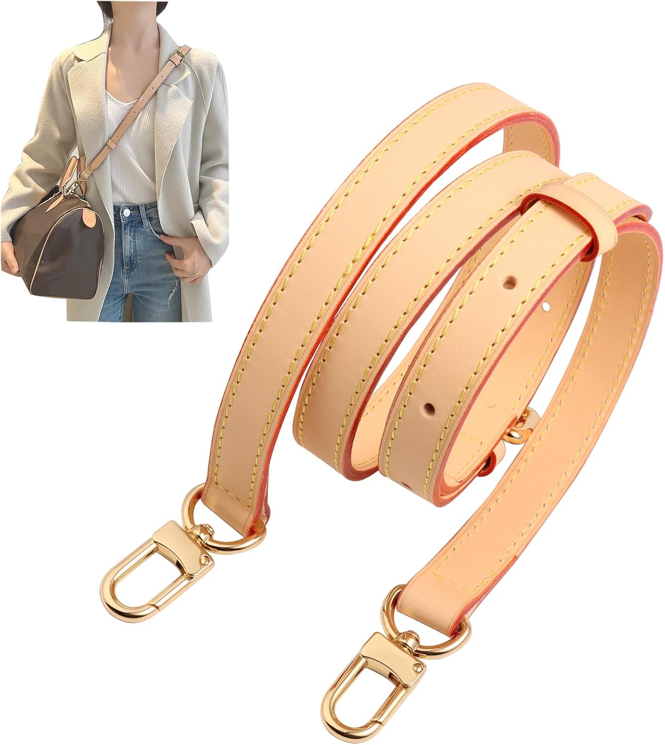 Genuine Vachetta Leather Crossbody Strap Vachetta Leather Replacement Bags Strap Adjustable Shoulder Strap for Speedy 20 25 30(Apricot Width 0.71“ Adjustalbe)