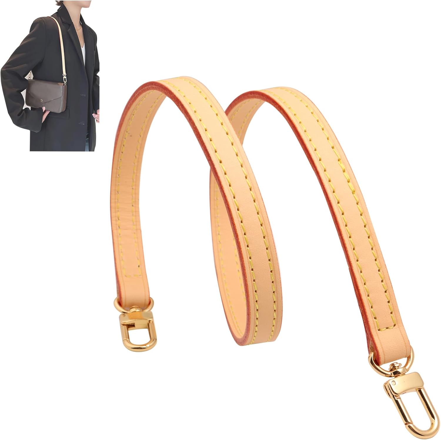 Genuine Vachetta Leather Strap Replacement Thin short Vachetta Leather Shoulder Straps for Multi Pochette (Apricot Length 26” Width 0.47“)