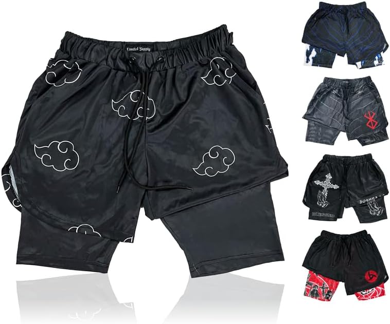 CROWN Anime Shorts - Breathable Mesh Stretch Compression Gym Short with Pockets and Towel Holder