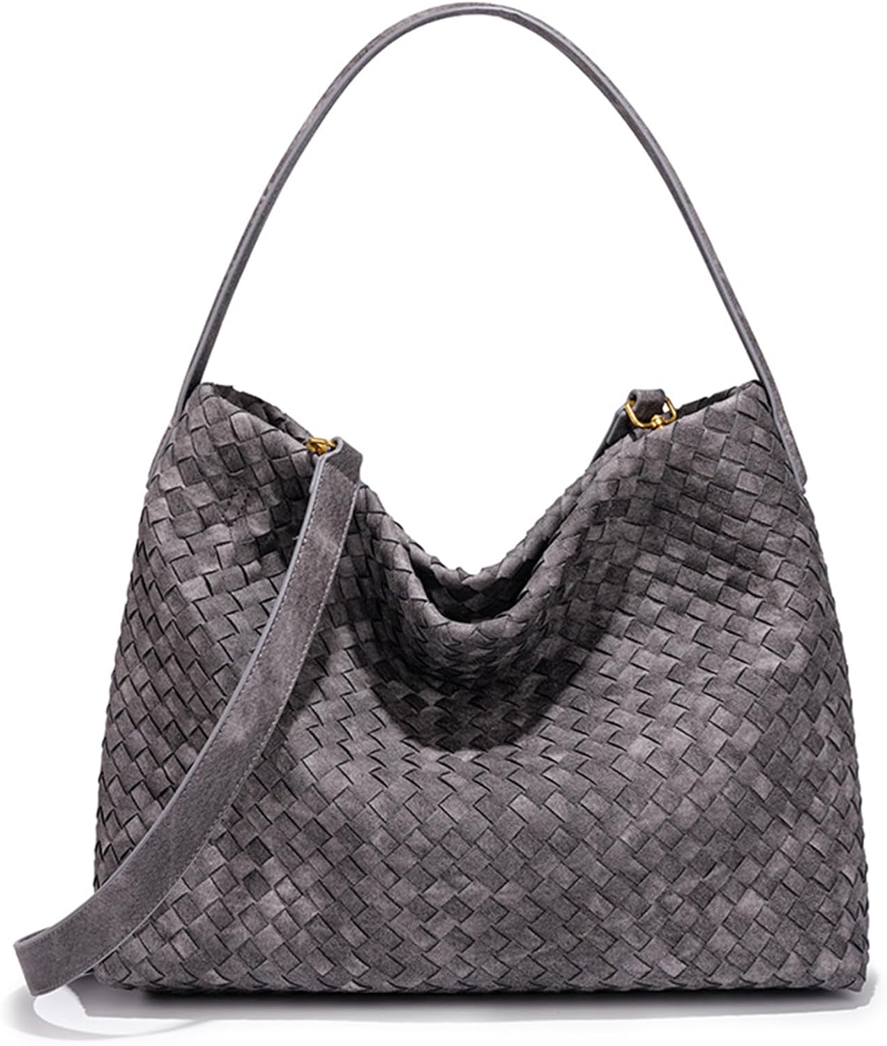Woven Suede Hobo Bag for Women Trendy Slouchy Shoulder Tote Purse with Leather Crossbody Strap for Work Travel