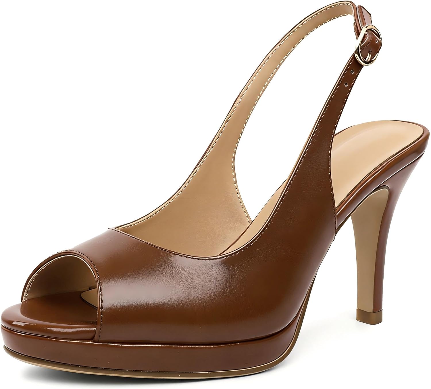 Joseywade Women's Peep Toe Platform Slingback Heels 3.5 Inch High Heel Dress Shoes