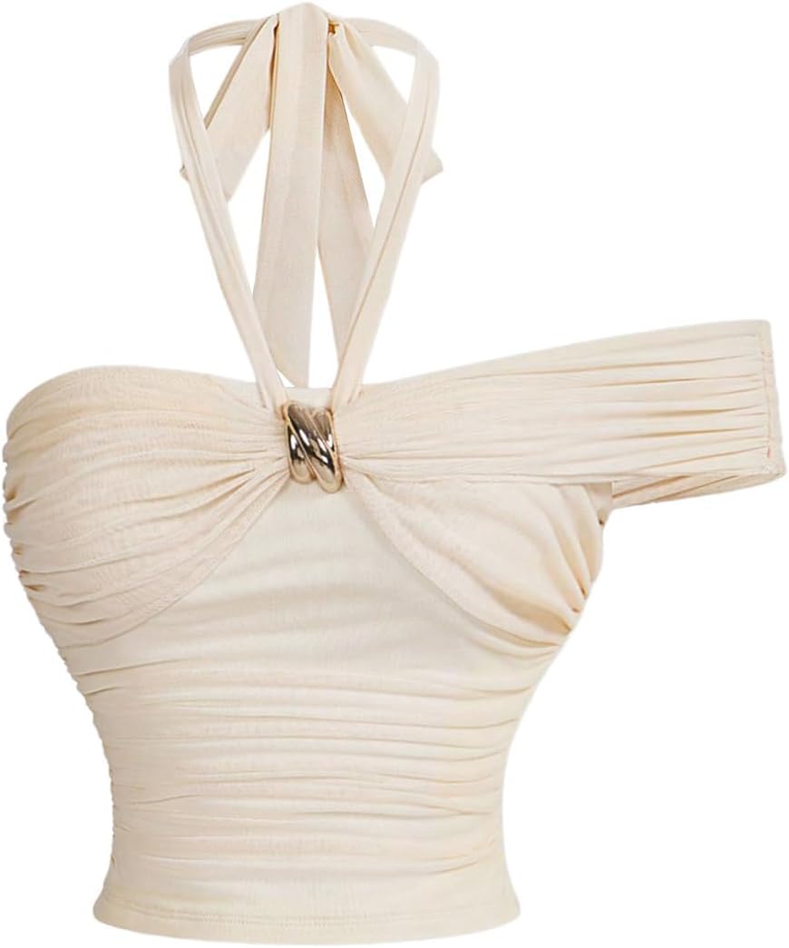 SOLY HUX Women's Ruched Halter Top Sleeveless Tie Backless Going Out Summer Crop Tops