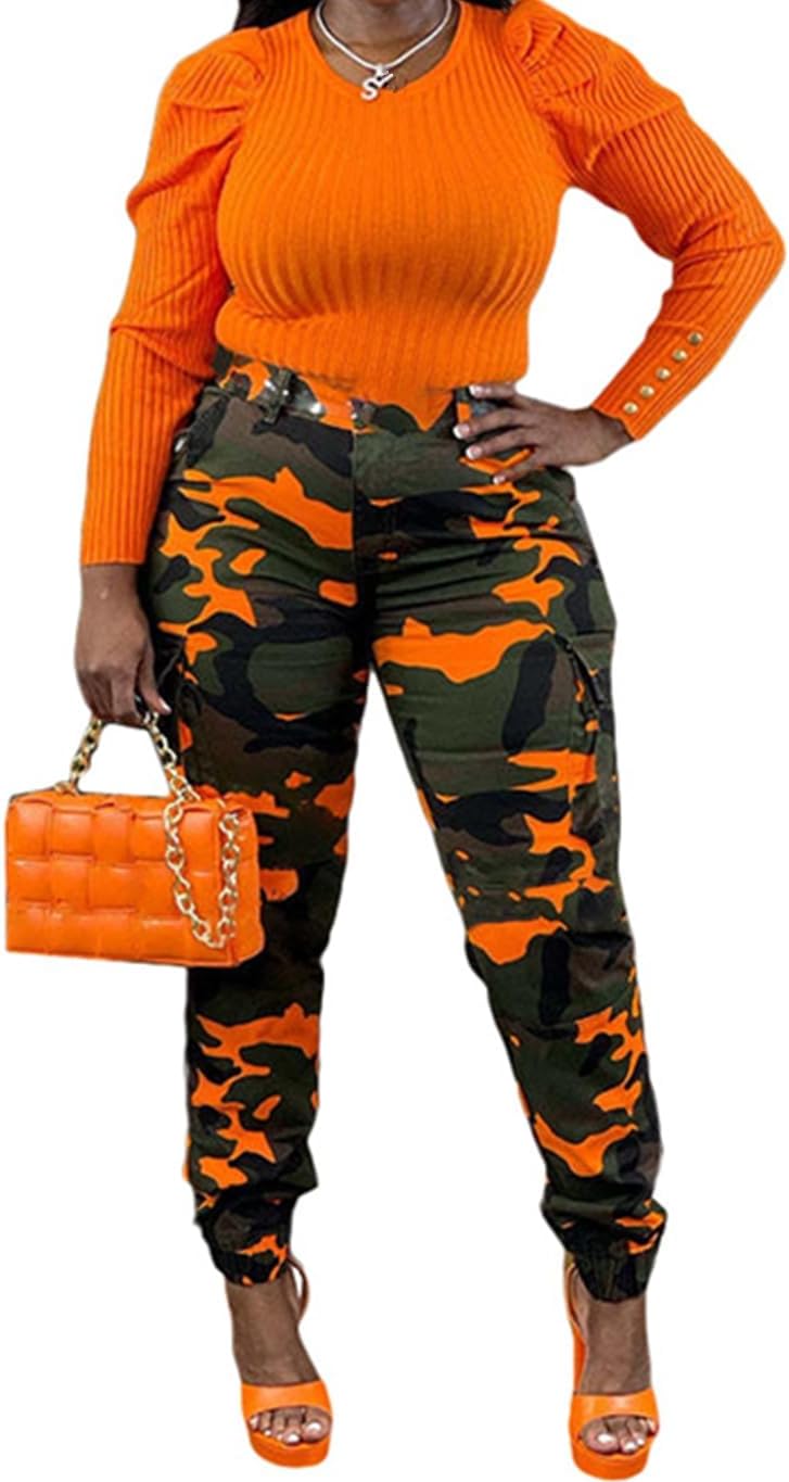 Woman's Casual Camouflage Camo Cargo Long Pants with Pockets