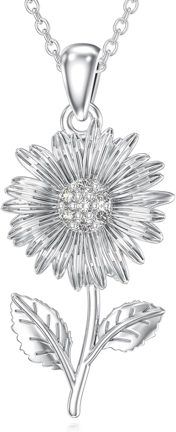 Diamond Daisy Necklace 925 Sterling Silver Lab Grown Diamond Daisy Flower Pendant Necklace Gift for Women