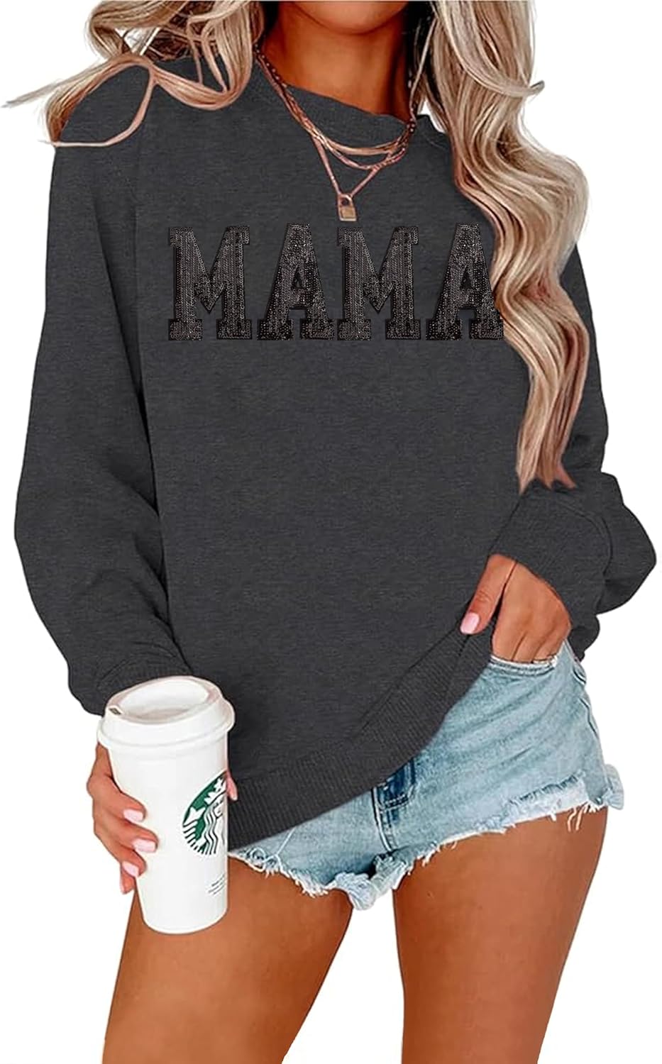 Mama Sweatshirt Mom Sequin Letter Print Long Sleeve Shirts Mother's Day Autumn Casual Pullover Tops