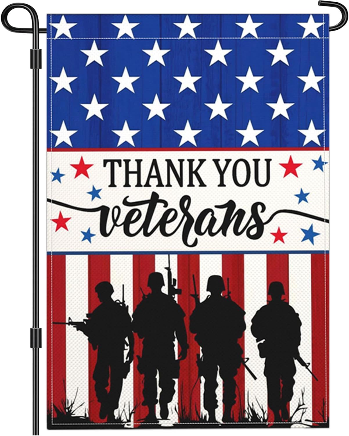 - Veterans Day Garden Flag Size: This patriotic veterans day garden flag measures 12x18 inches. Flag stand and pole are not included, featuring a convenient sleeve at the top for easy placement on any standard flagpole.