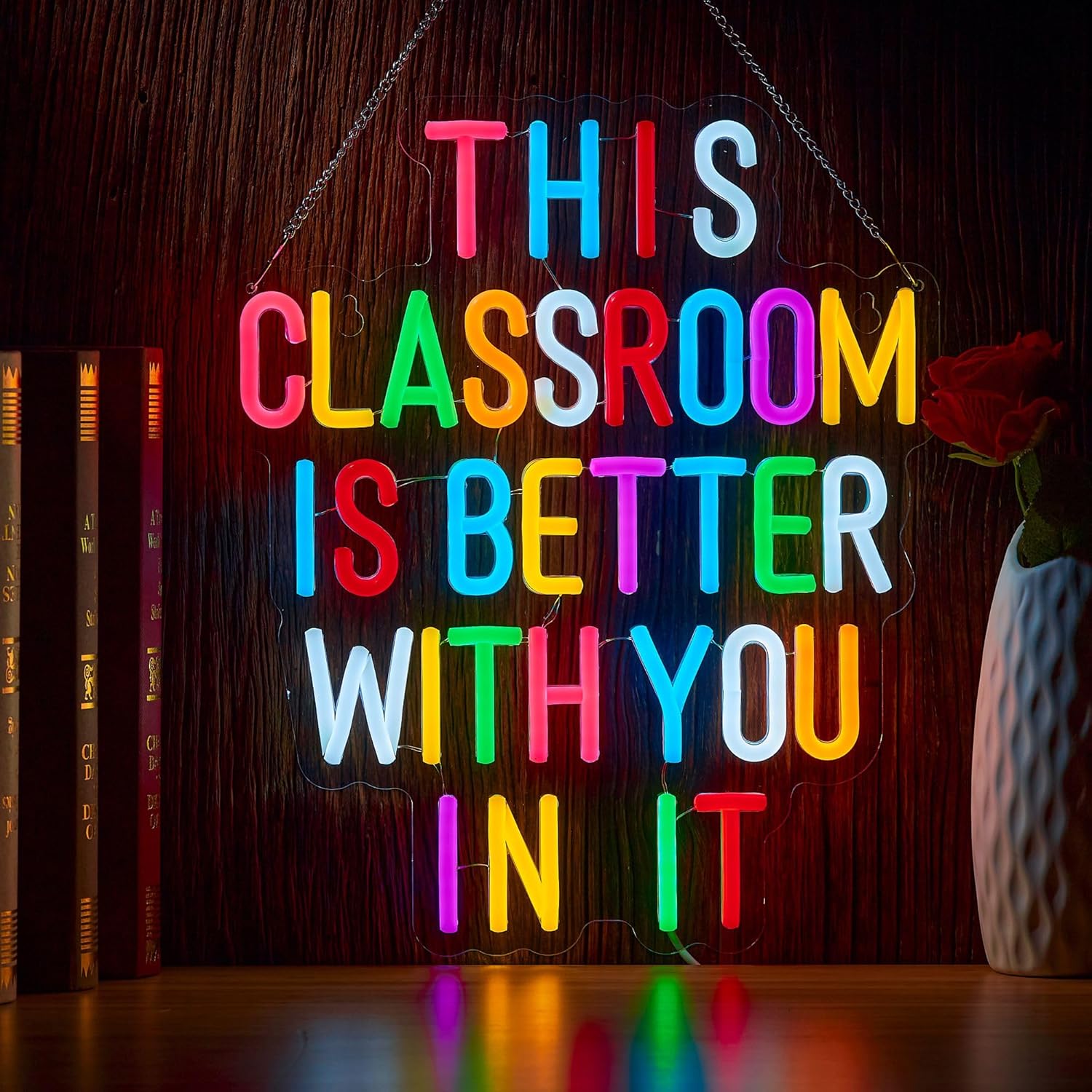 - 【Cool design】This classroom is better with you in it neon sign. Made of soft silicon LED strip lights and clear acrylic board. Well made and packed.