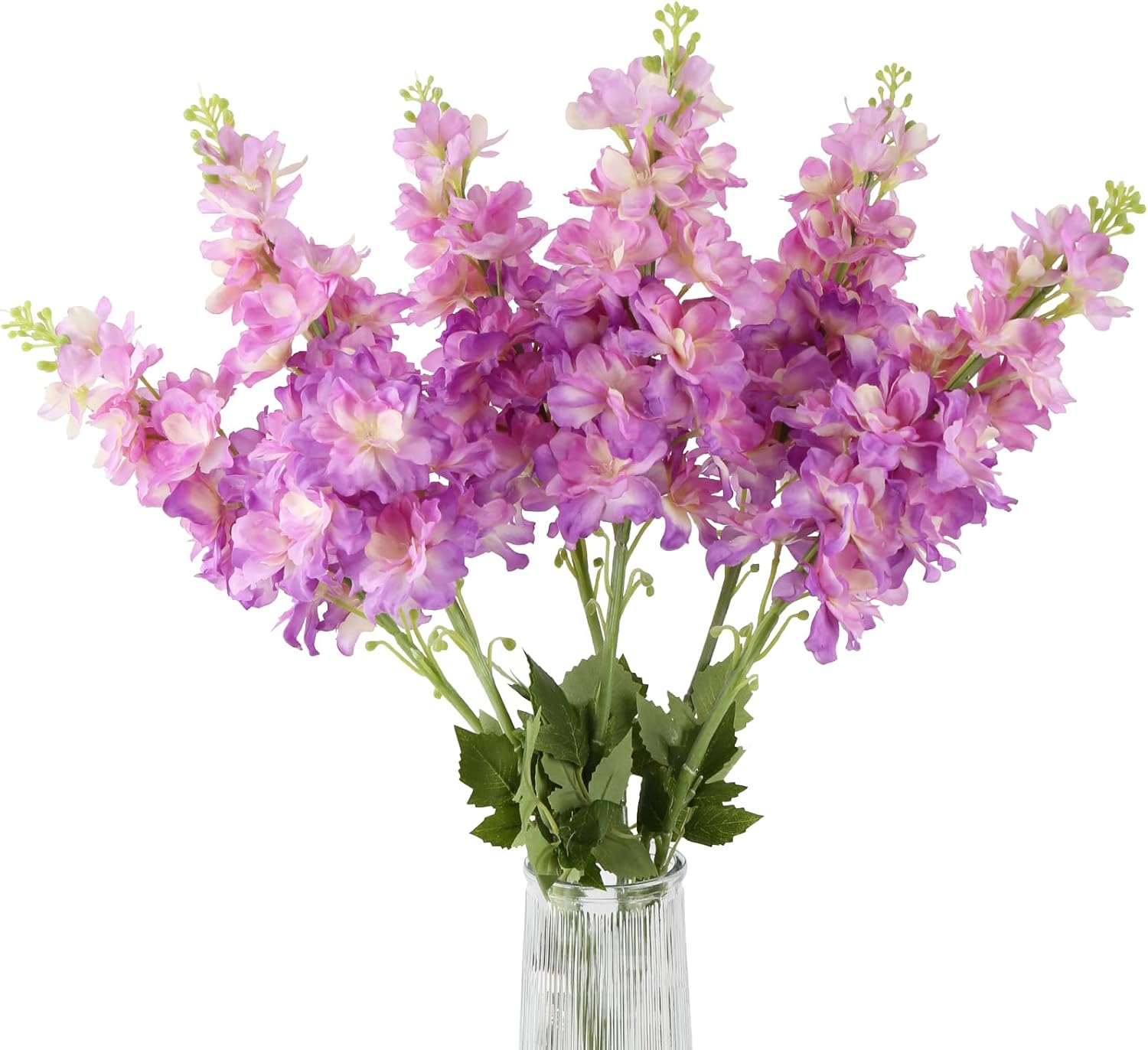 - REALISTIC FAKE FLOWERS: Our delphinium artificial flowers mimic the natural beauty and delicate charm of the real delphinium, the silk flowers colour is rich and vivid, look very natural and lifelike that are bright and eye-catching for adding a fresh natural beauty to home, wedding, party and ect. They won't wilt, no maintenance,no watering allowing you to enjoy their beauty without any hassle all year around